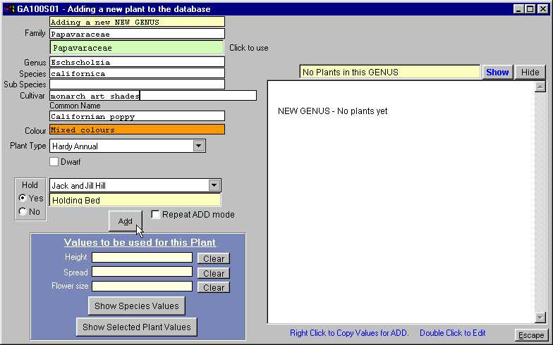 Add a Plant to database, Add a Plant to a garden area.